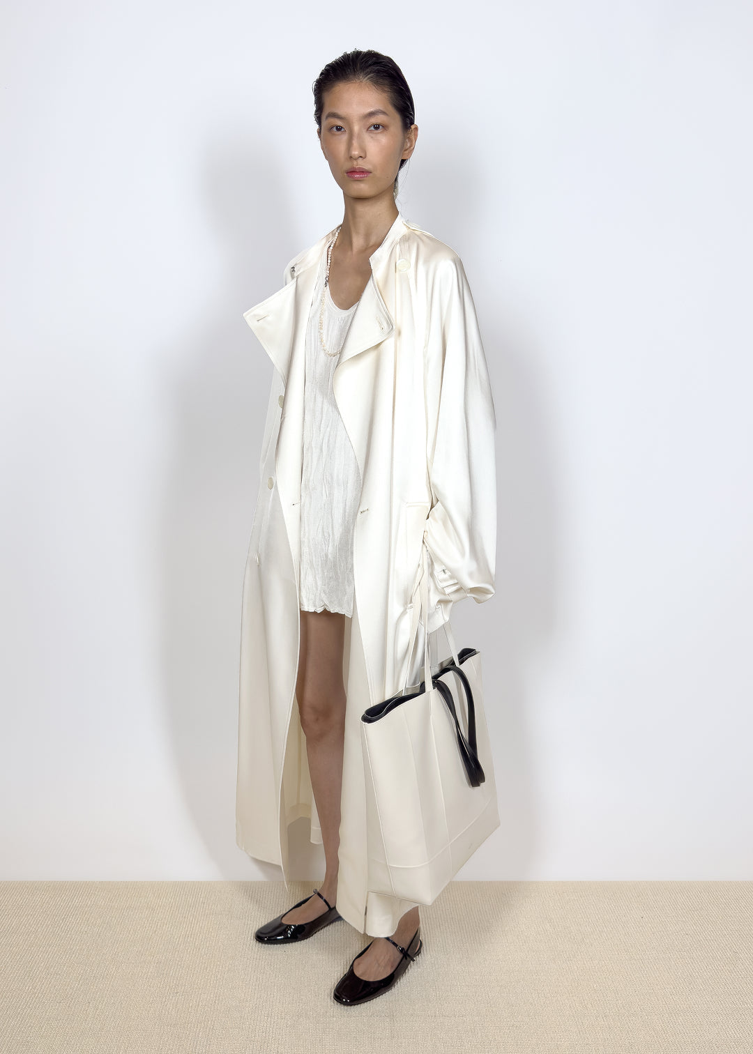 Seasonal outerwear and TOTEME signatures — such as the emblematic Embroidered scarf jacket and Country coat — in sumptuous shearling, buttery leather and structured gabardine.