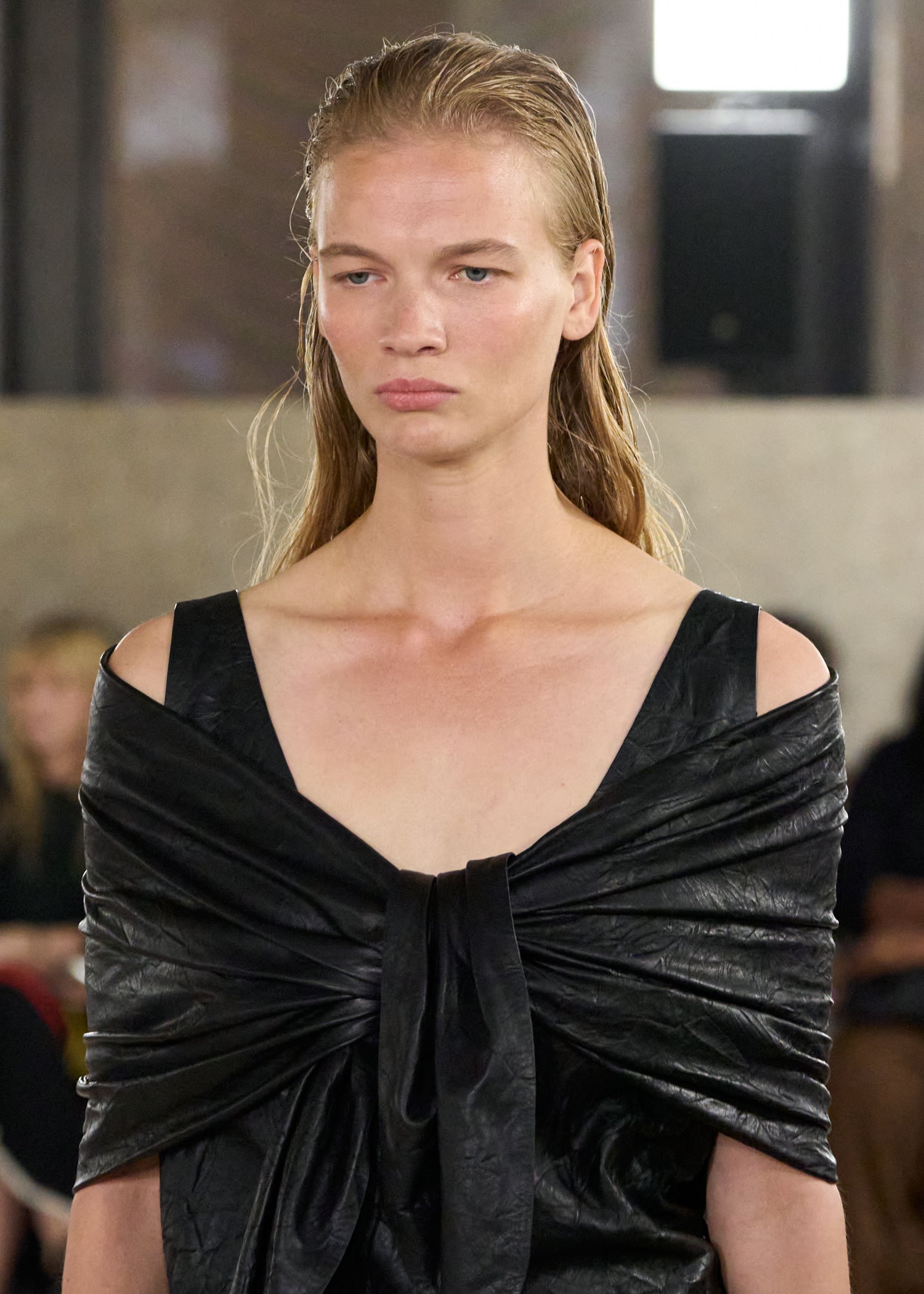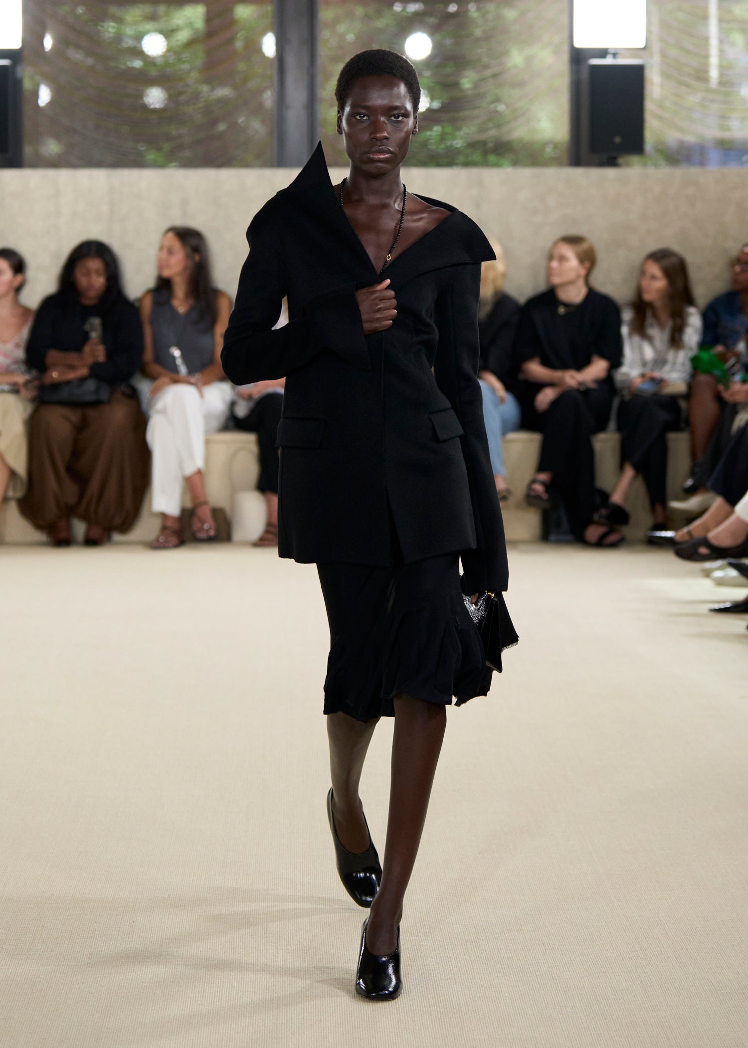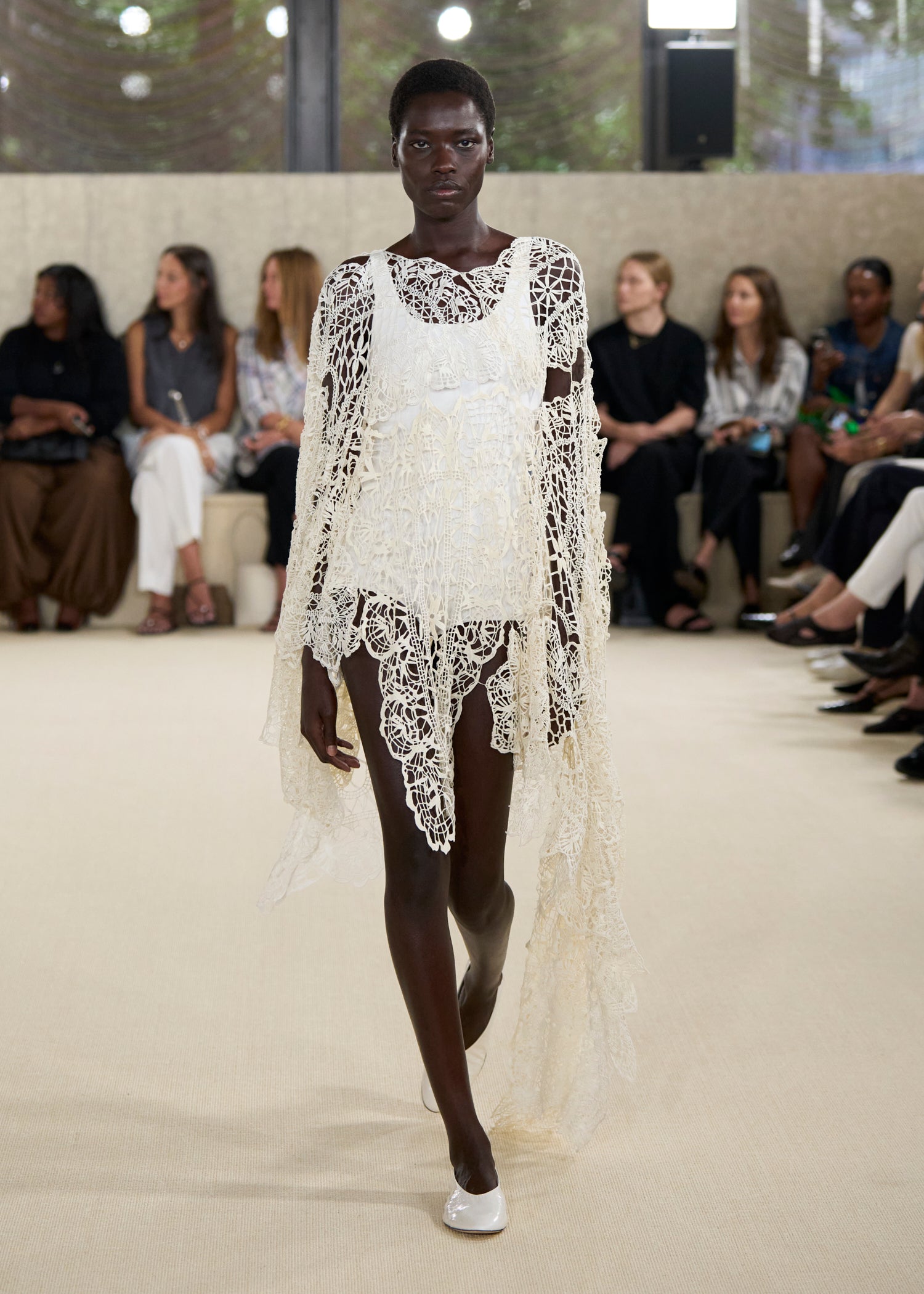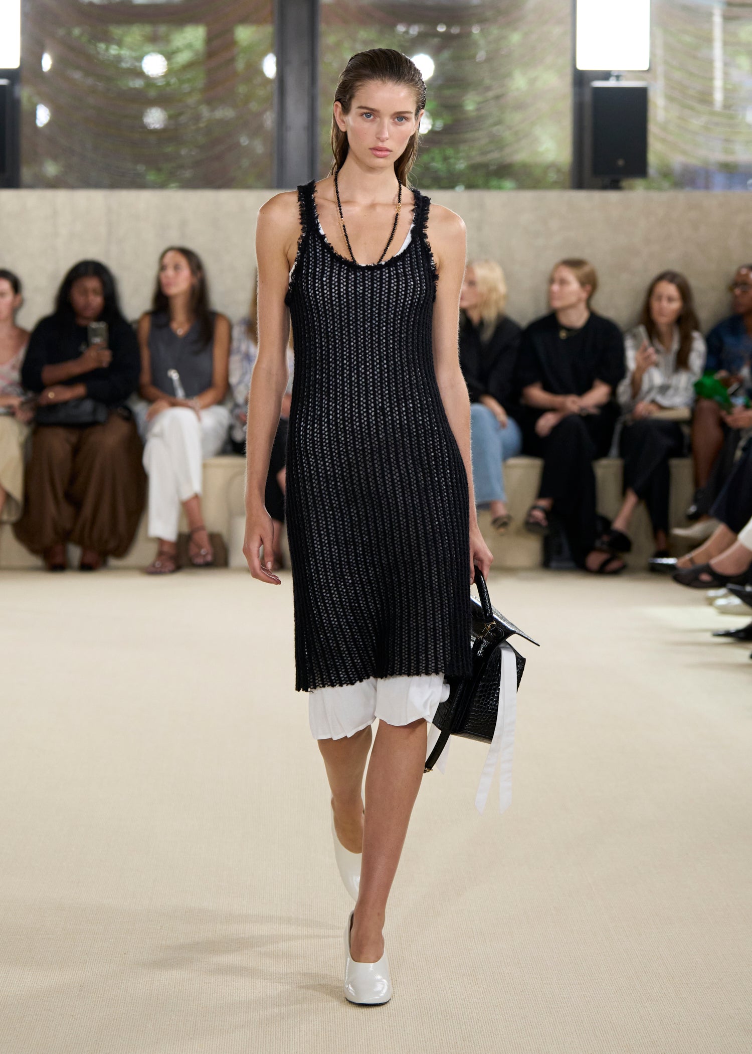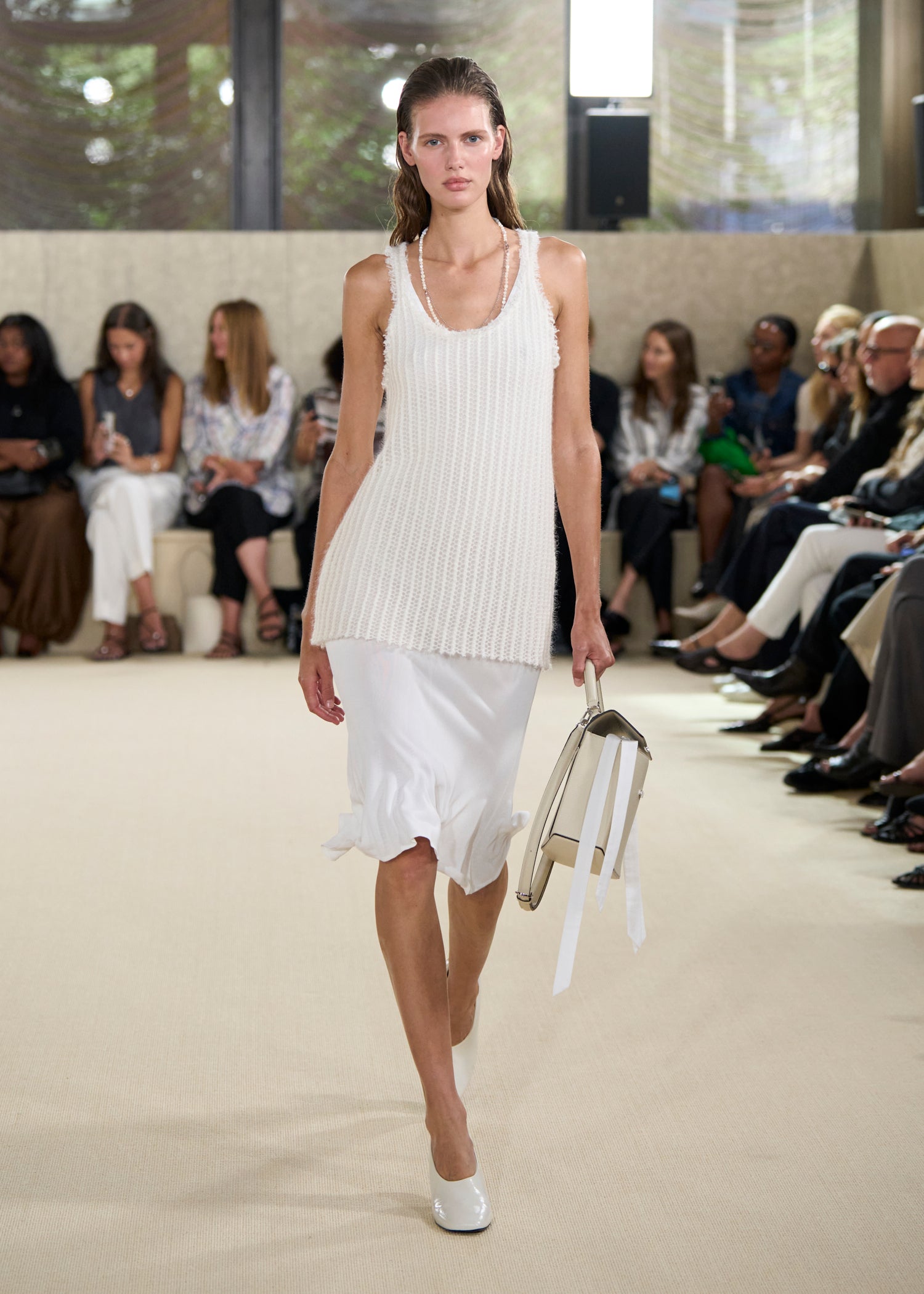 The Spring Summer 26 runway collection distills undone beauty. TOTEME icons like the tank, trench coat and pajama are deconstructed with easy-going precision, unravelling finishes, and a liberating mix of time-softened textures.