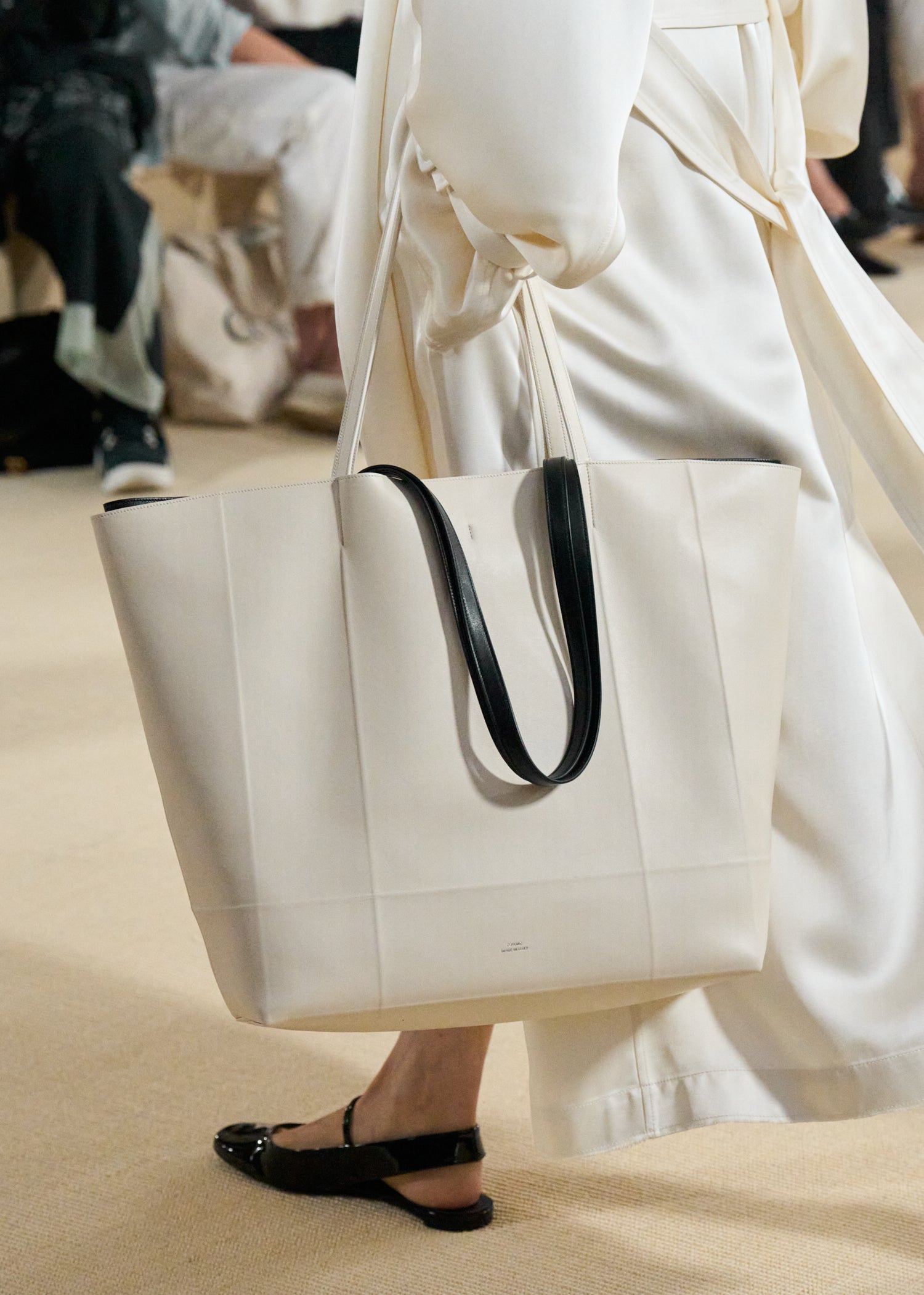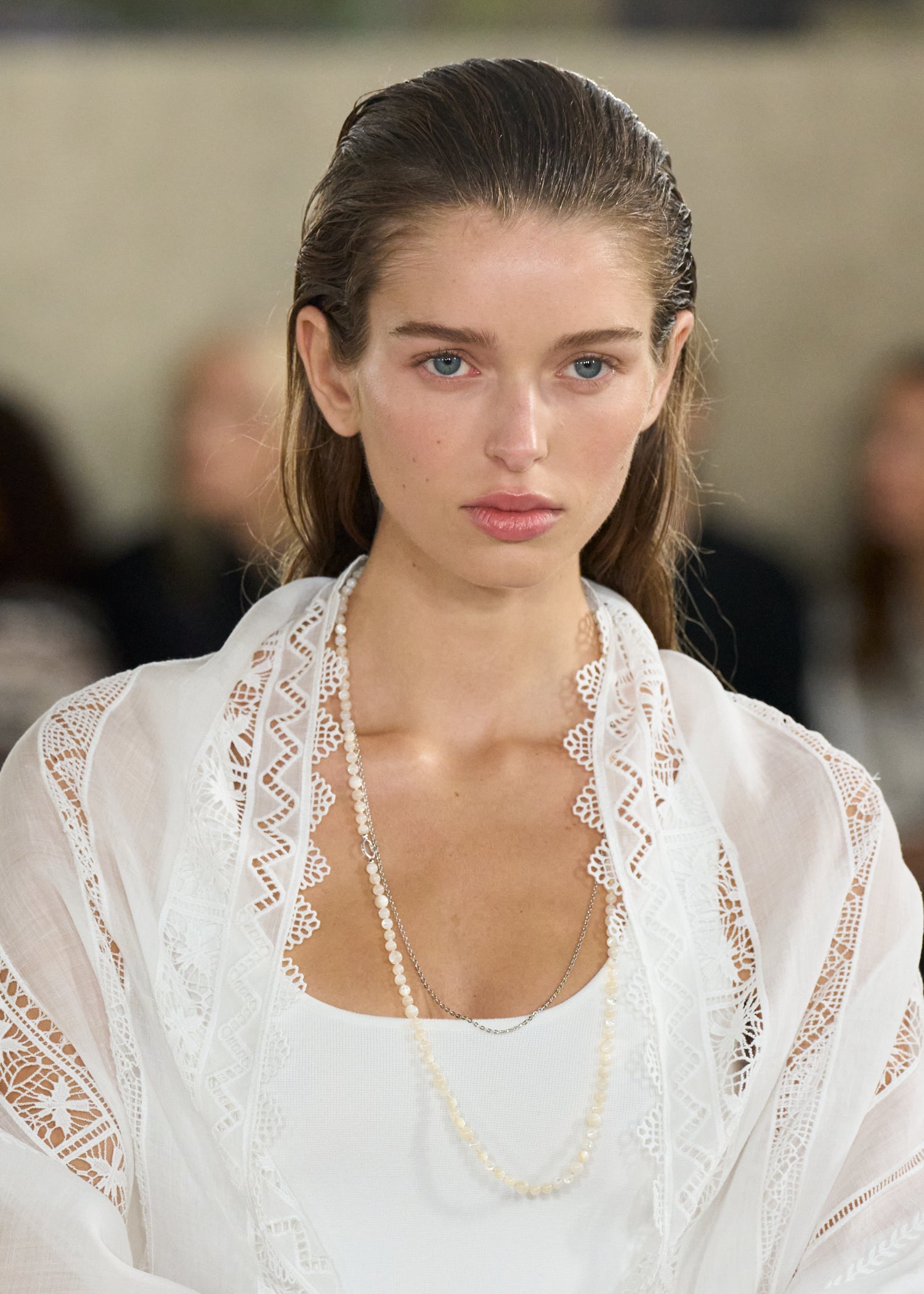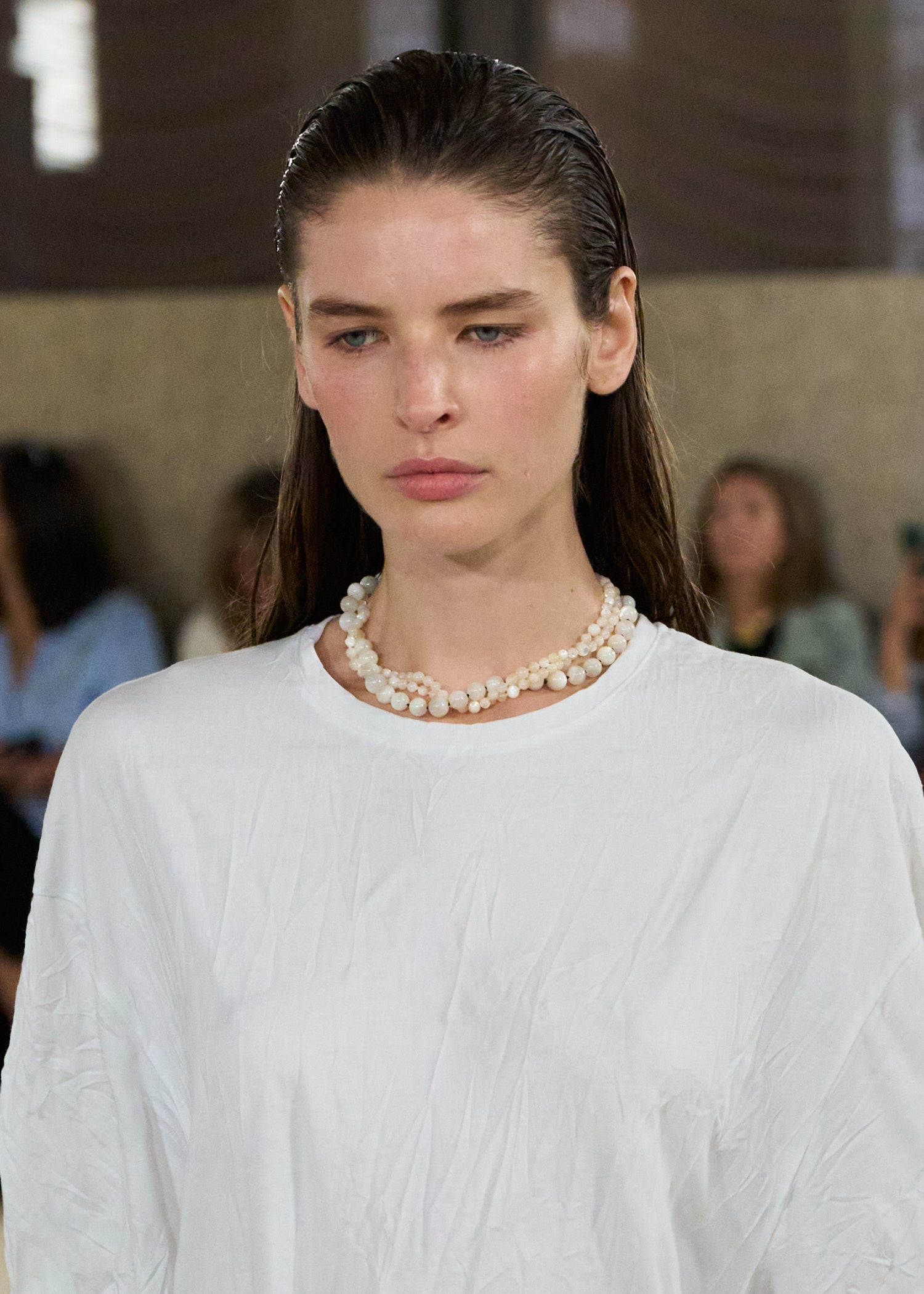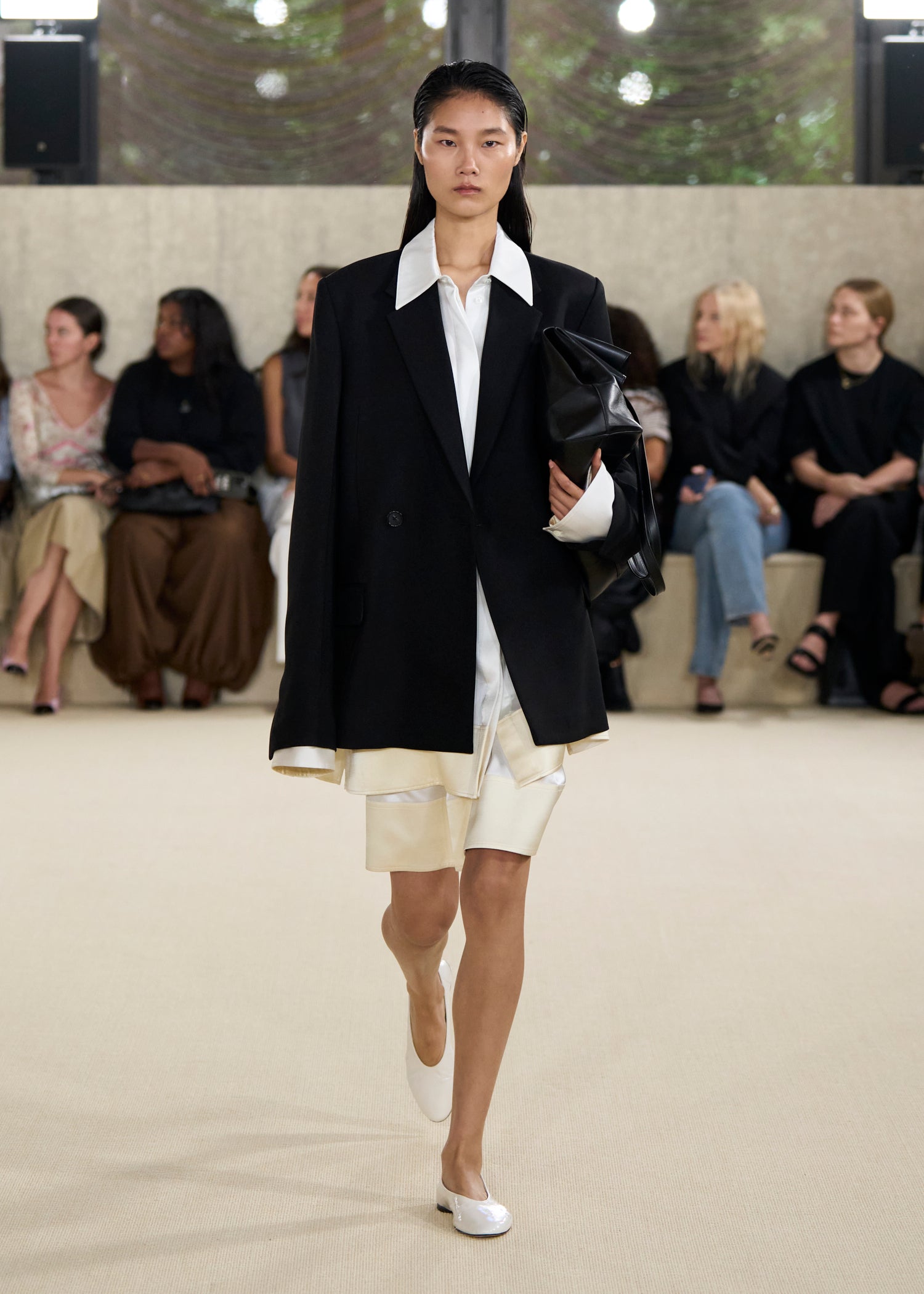 The Spring Summer 26 runway collection distills undone beauty. TOTEME icons like the tank, trench coat and pajama are deconstructed with easy-going precision, unravelling finishes, and a liberating mix of time-softened textures.