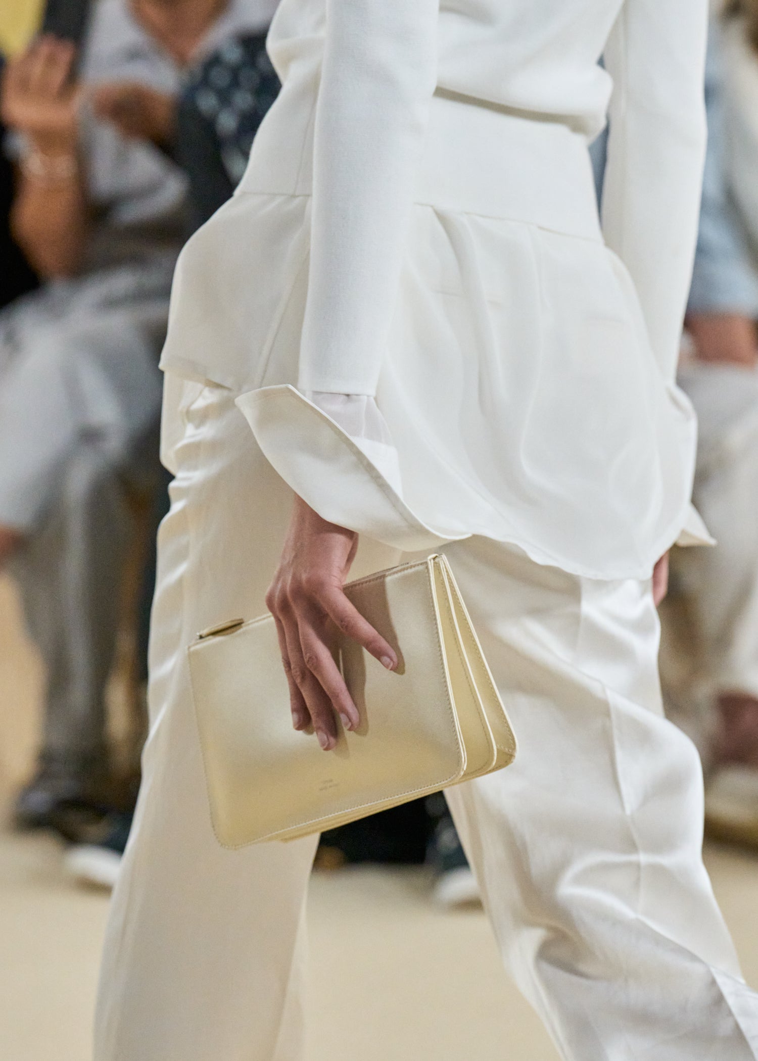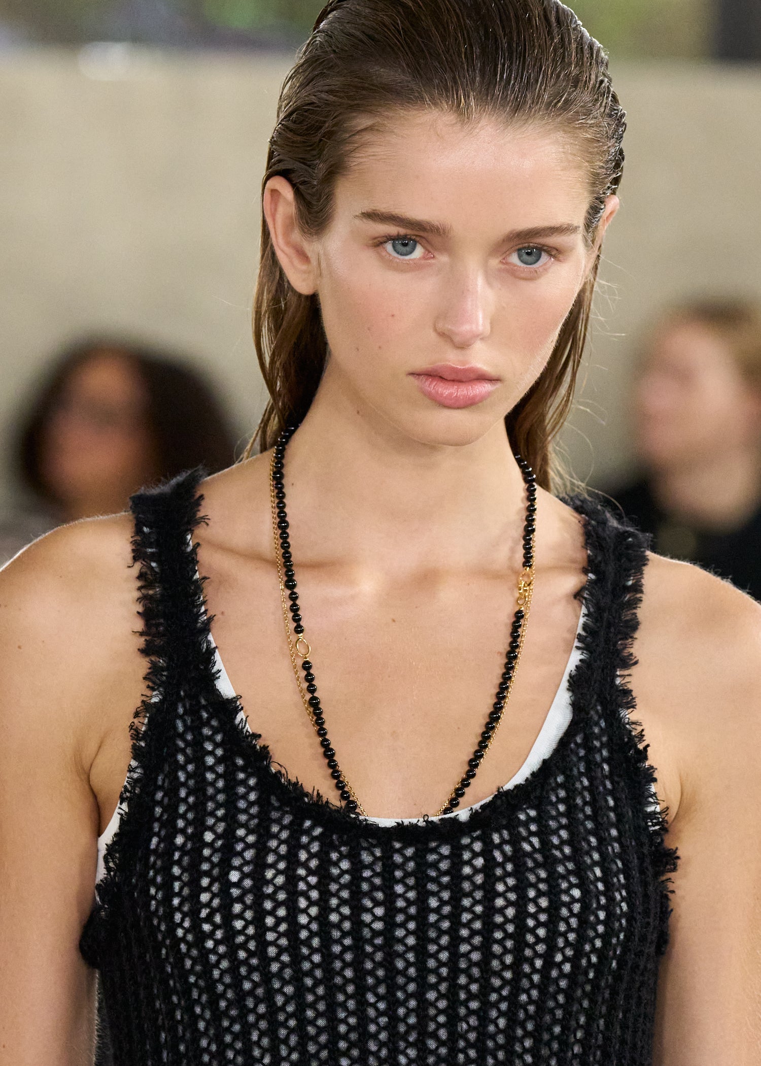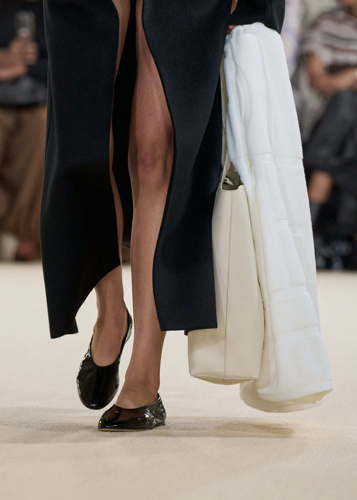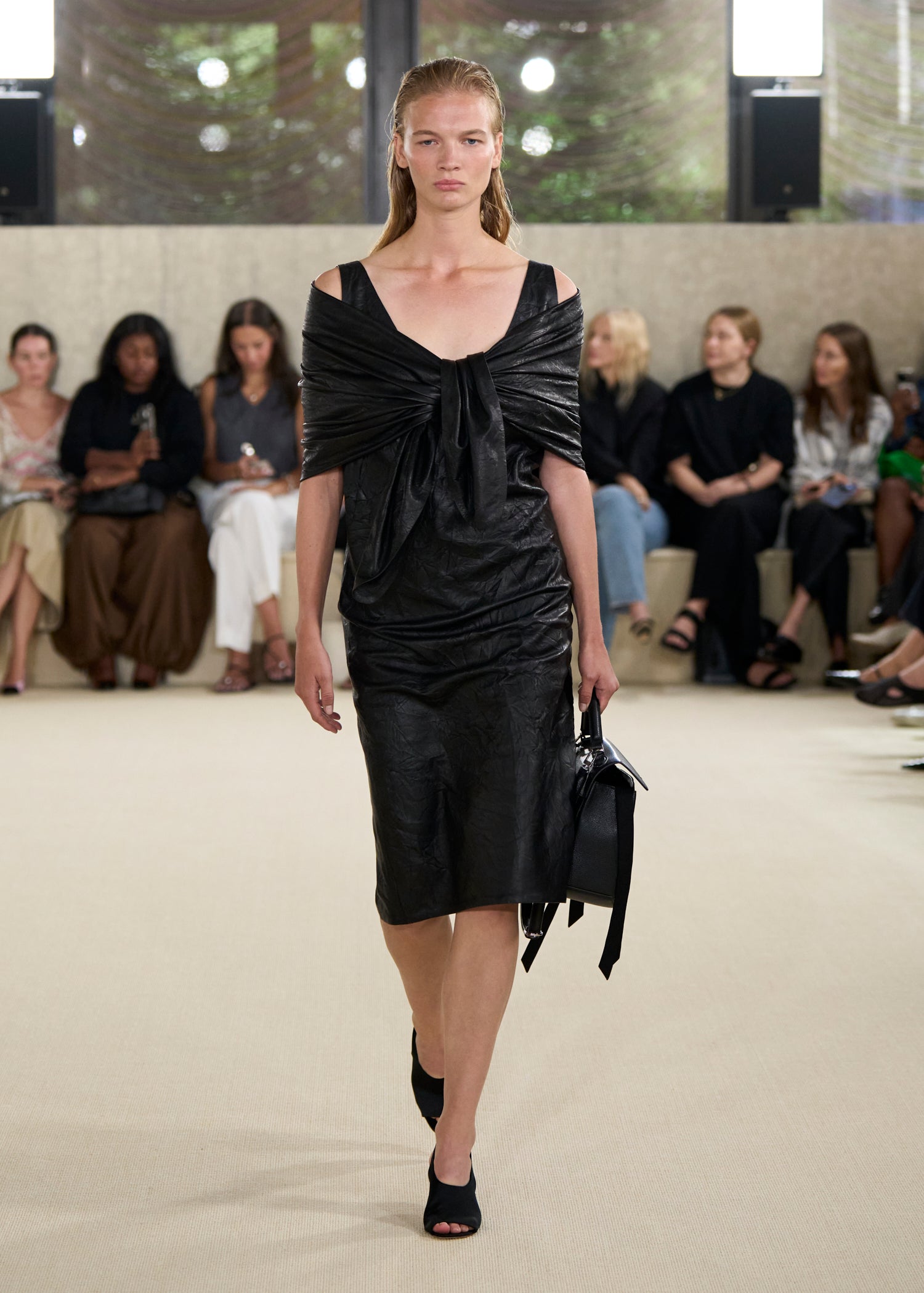 The Spring Summer 26 runway collection distills undone beauty. TOTEME icons like the tank, trench coat and pajama are deconstructed with easy-going precision, unravelling finishes, and a liberating mix of time-softened textures.